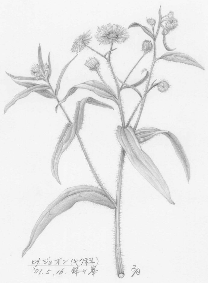 北米原産の帰化植物。同じヒメジョオン節のハルジオンも北米原産の帰化植物。鉢ヶ峯では、鉢塚から南に伸びる中央尾根道の道端などで普通に見られる。